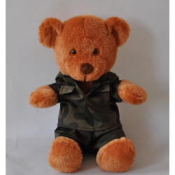Pluszowy miś w ubranku żołnierskim, dostępny w dwóch kolorach .